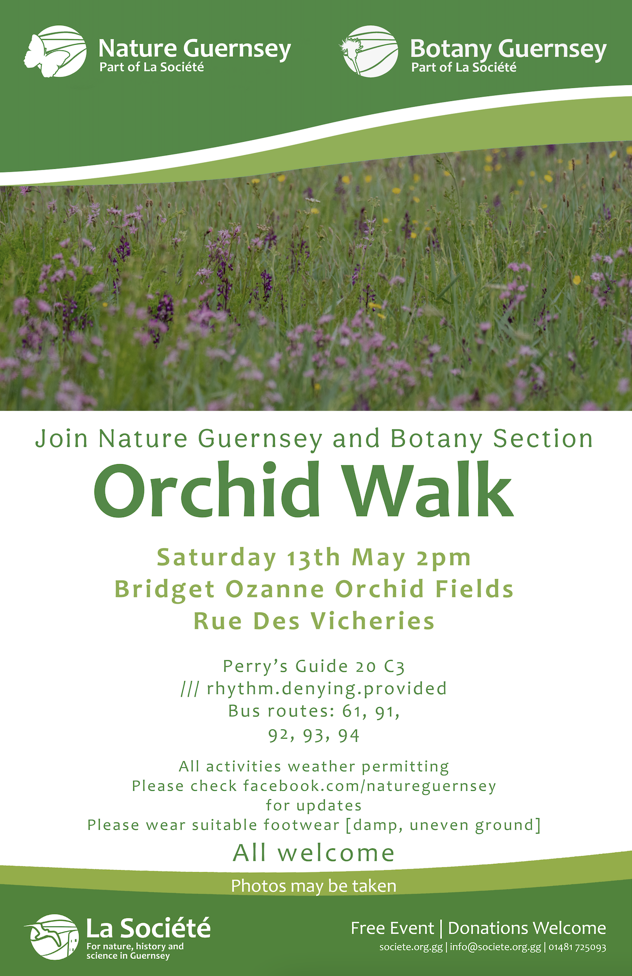 All welcome. Event weather permitting. Please check www.facebook.com/natureguernsey on the day.